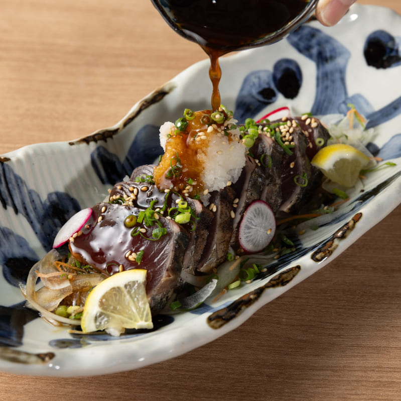藁で燻したカツオのタタキ