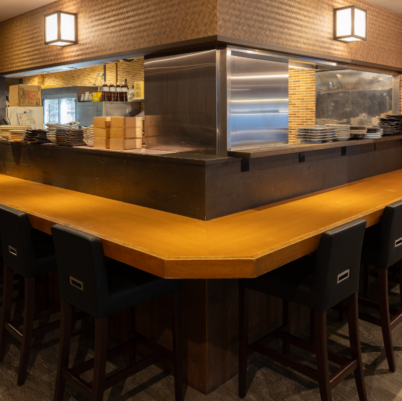 調理スペースが目の前にあるカウンター席は臨場感あふれる雰囲気を過ごせる、居酒屋らしいお席です。
